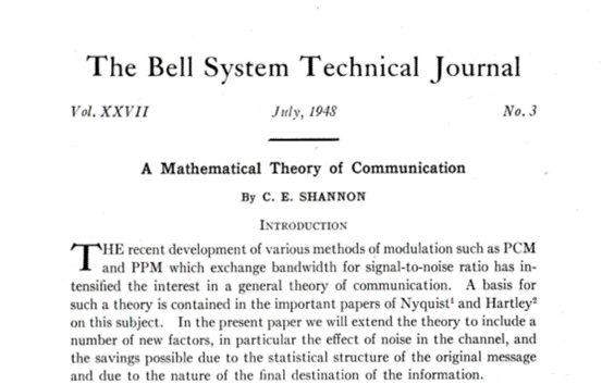 如果說1946 年第一臺(tái)數(shù)字計(jì)算機(jī) ENIAC 的誕生標(biāo)志著數(shù)字時(shí)代的開始,那么1948 年就可以稱為DSP(digital signal processing)的元年。因?yàn)樵谶@一年,貝爾實(shí)驗(yàn)室的克勞德·香農(nóng) (Claude Shannon) 發(fā)表了他具有里程碑意義的論文——《通信的數(shù)學(xué)理論》(A Mathematical Theory of Communication),該論文明確闡述了可實(shí)現(xiàn)的比特率、信道帶寬和信噪比之間的關(guān)系。