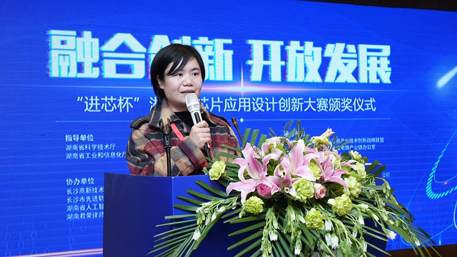 評(píng)審結(jié)束后,長(zhǎng)沙工業(yè)和信息化局副局長(zhǎng)張芬發(fā)表重要講話。她表示集成電路產(chǎn)業(yè)的高質(zhì)量發(fā)展離不開(kāi)產(chǎn)業(yè)鏈上各企業(yè)的協(xié)同創(chuàng)新,本次芯片應(yīng)用設(shè)計(jì)創(chuàng)新大賽秉承著“用心打造產(chǎn)業(yè)生態(tài),推動(dòng)行業(yè)協(xié)同發(fā)展”的精神,重點(diǎn)挖掘芯片創(chuàng)新應(yīng)用領(lǐng)域的優(yōu)質(zhì)項(xiàng)目和專(zhuān)業(yè)人才,這是一次多方共贏、成效倍加的有益嘗試。最后她誠(chéng)摯感謝行業(yè)人士和各大高校對(duì)本次比賽的大力支持,同時(shí)也真誠(chéng)地希望越來(lái)越多的企業(yè)家和專(zhuān)業(yè)技術(shù)人才選擇留在長(zhǎng)沙,為長(zhǎng)沙集成電路產(chǎn)業(yè)發(fā)展添磚加瓦。