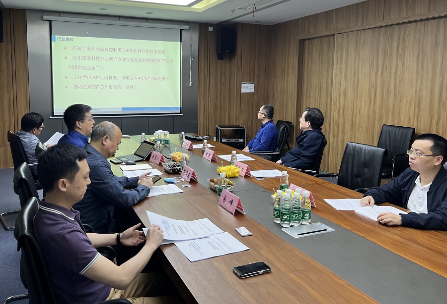 進芯電子董事長黃嵩人就公司產(chǎn)業(yè)背景、產(chǎn)品技術(shù)創(chuàng)新以及未來發(fā)展規(guī)劃等方面向張健主席一行進行了匯報,并就典型產(chǎn)品應(yīng)用做了詳細說明,展示了進芯電子近年來在集成電路行業(yè)發(fā)展方面取得的突出成果。
