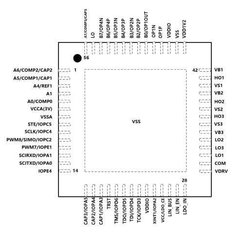 六路NMOS Pre-Driver+4TCON+3CAP+QEP+延時濾波+運算加速單元(除法+開方+反正切+帕克變換+32位乘法移位 |