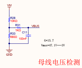 ADC采樣母線采樣電路,母線電壓的值進行分壓送到芯片AD口,參與到FOC的運算。